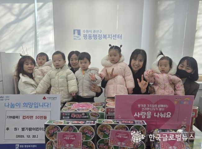 (한국글로벌뉴스 - 박소연 기자) 지난 22일 별가람어린이집에서는 연말연시를 맞이하여 이웃 돕기 후원 물품 컵라면 50 상자를 평동 행정복지센터에 전달했다.