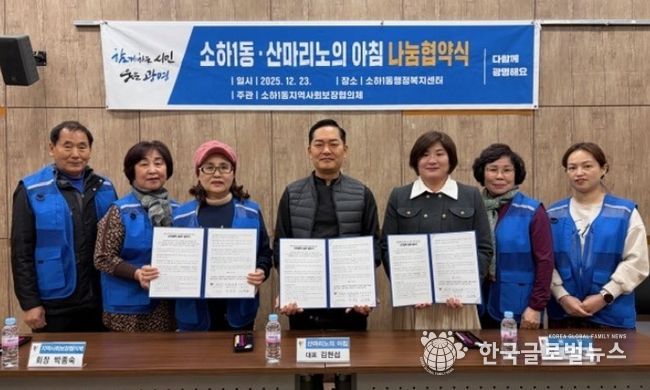 (한국글로벌뉴스 - 박소연 기자) 광명시 소하1동 행정복지센터는 23일 소하1동 지역사회보장협의체, 산마리노의 아침과 함께 나눔 문화 확산을 위한 업무협약(MOU)을 체결했다.