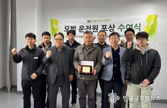 (한국글로벌뉴스 - 박소연 기자) 화성도시공사는 교통약자이동지원 서비스 현장에서 안전운전과 친절 응대를 실천하며 이용자 만족도 제고에 기여한 ‘2025년 모범 운전원’ 8명을 선정하고, 12월 22일 봉담차고지에서 포상 수여식을 개최했다고 밝혔다.