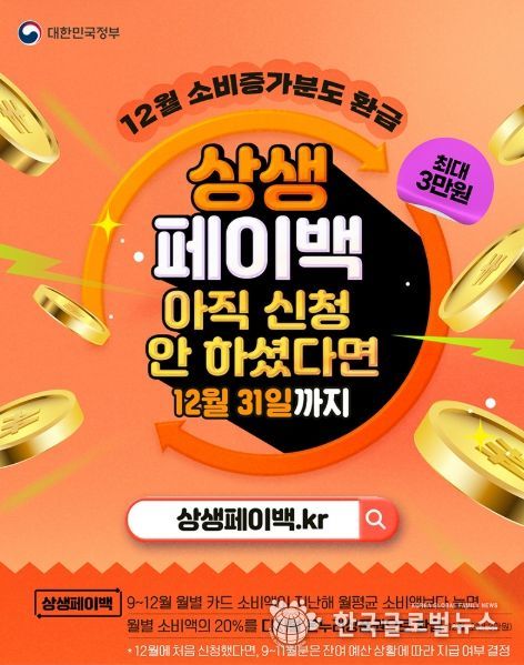 9~12월 월별 카드 소비액이 지난해 월평균 소비액보다 늘면 월별 소비액의 20%를 디지털 온누리상품권으로 환급 (12월, 최대 3만 원)