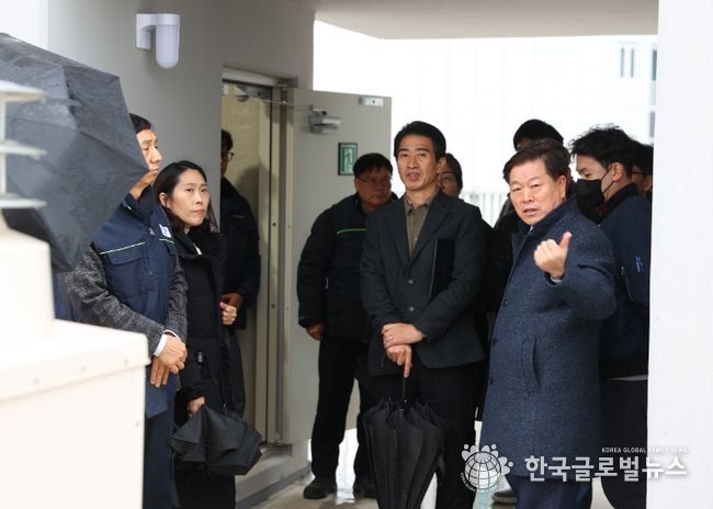 박 시장은 건축 마감 상태를 비롯해 주요 시공 품질과 안전 관리 실태를 직접 점검하며, 현장 관계자들과 입주 예정자들의 의견을 청취했다.