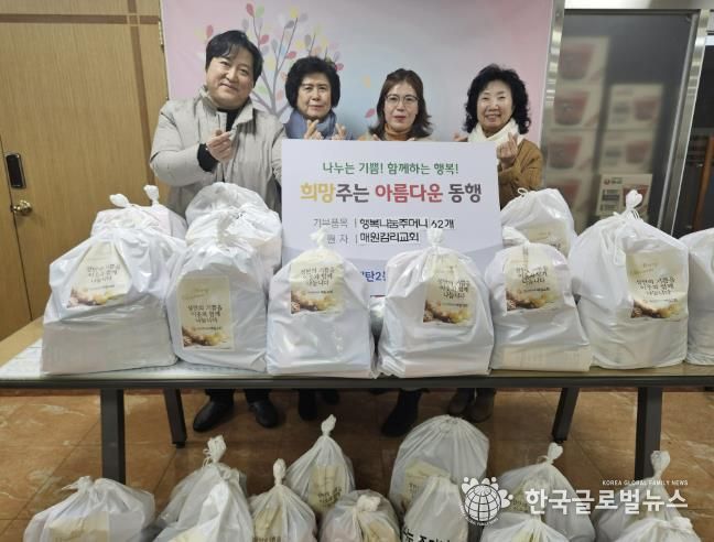 (한국글로벌뉴스 - 박소연 기자) 지난 23일, 매원감리교회는 크리스마스를 맞아 행복나눔주머니 62개를 매탄2동 행정복지센터에 전달했다.