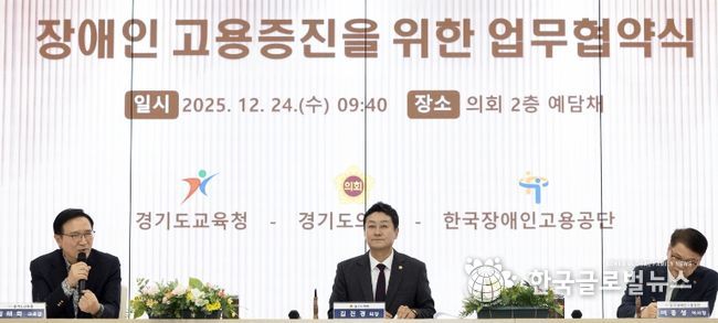 (한국글로벌뉴스 - 박소연 기자) 경기도교육청이 24일 경기도의회 예담채에서 경기도의회(의장 김진경), 한국장애인고용공단(이사장 이종성)과 함께 장애인 고용증진을 위한 업무협약을 체결했다.