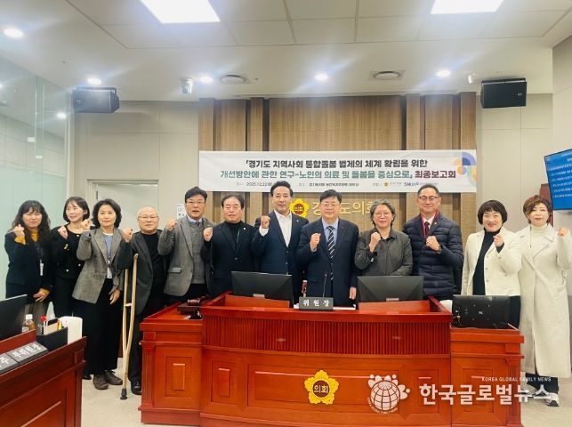 (한국글로벌뉴스 - 박소연 기자) 경기도의회 보건복지위원회 연구단체인 보건복지연구회(회장 이선구 위원장, 더불어민주당, 부천2)는 12월 22일, '경기도 지역사회 통합돌봄 체계 확립을 위한 개선방안에 관한 연구'를 주제로 연구용역 최종보고회를 개최했다.
