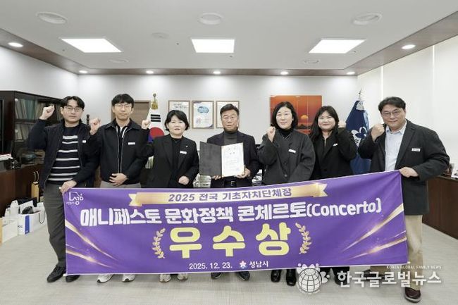 (한국글로벌뉴스 - 박소연 기자) 성남시는 ‘2025 전국 기초자치단체장 매니페스토 문화정책 콘체르토(Concerto)’ 대회에서 신인 예술인 등용문인 ‘성남(SN) 탤런트’ 사업 성과를 인정받아 문화 활동 활성화 분야 우수상을 받았다고 26일 밝혔다.
