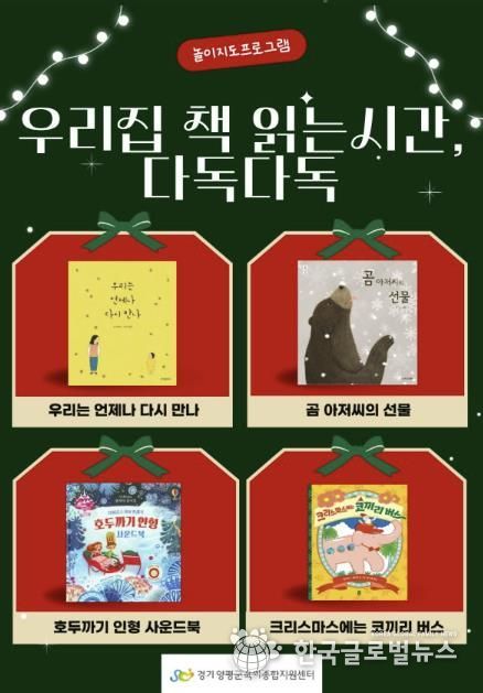 (한국글로벌뉴스 - 박소연 기자) 양평군육아종합지원센터는 연말을 맞아 관내 영유아 가정을 대상으로 가정에서 실천할 수 있는 부모교육과 놀이·독서 연계 프로그램을 운영했다.