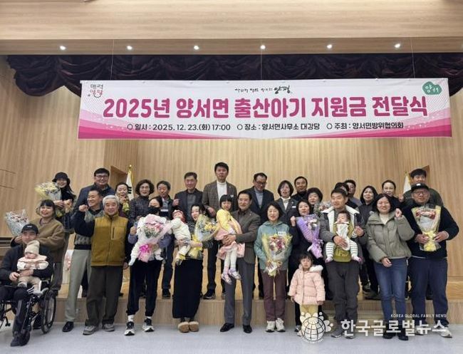 (한국글로벌뉴스 - 박소연 기자) 양서면 방위협의회는 지난 23일 저출산 극복과 출산 장려 분위기 조성을 위해 ‘2025년 양서면 출산아기 지원금 전달식’을 개최했다.