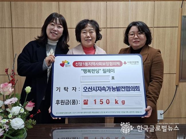 (한국글로벌뉴스 - 박소연 기자) 오산시 신장1동 행정복지센터는 지난 24일 오산시 지속가능발전협의회로부터 관내 취약계층 가구 지원을 위한 쌀 150kg를 기탁받았다고 밝혔다.