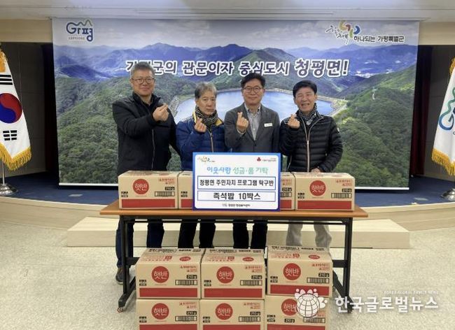 (한국글로벌뉴스 - 박소연 기자) 가평군 청평면 주민자치 프로그램 탁구반 회원들은 최근 청평면 행정복지센터를 방문해 소외된 이웃들이 따뜻한 겨울을 보내길 바라는 마음으로 즉석밥 10박스를 기탁했다.