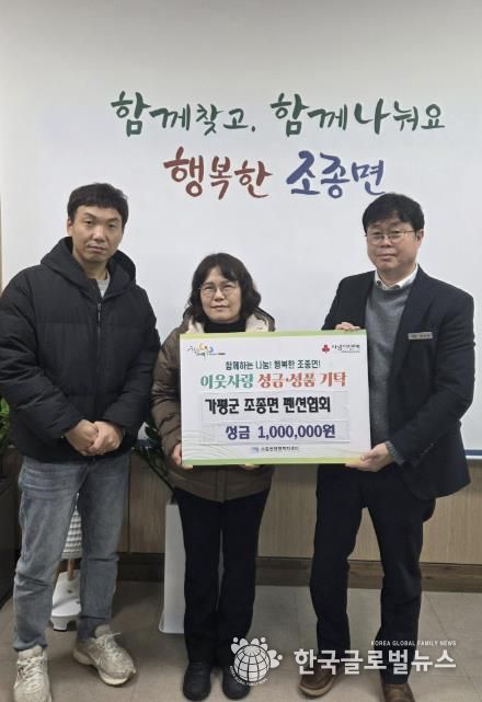 (한국글로벌뉴스 - 박소연 기자) 가평군 조종면 펜션협회는 지난 24일 조종면 행정복지센터를 방문해 이웃돕기 성금 100만원을 기탁하며 온기를 더했다.