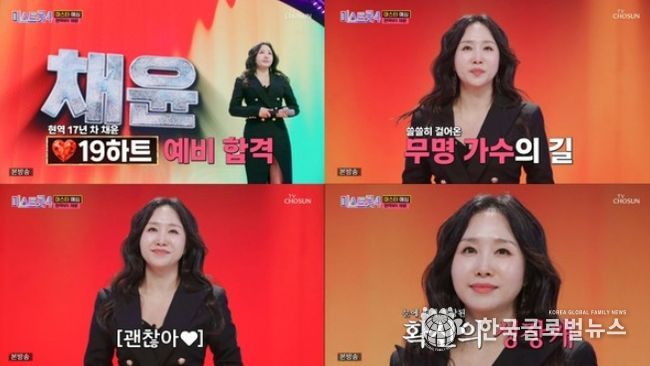 이날 방송에서 채윤은 이은하 원곡의 ‘겨울 장미’를 열창했다. 특유의 짙은 음색과 세월이 묻어나는 감정 표현으로 마스터 심사위원들은 물론, 시청자들의 마음까지 울리며 깊은 여운을 남겼다. 그 결과 채윤은 총 19하트를 받으며 예비 합격자가 됐다.