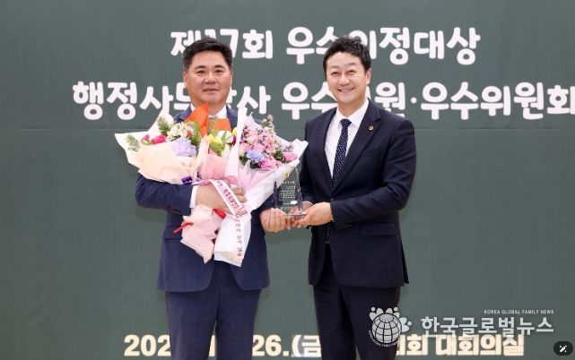 (한국글로벌뉴스 - 박소연 기자) 경기도의회 경제노동위원회 정하용 의원(국민의힘, 용인5)이 26일 열린 2025년 경기도의회 의원 종무식 및 시상식에서 대한민국시도의회의장협의회가 주관하는 ‘제17회 우수의정대상’ 및 경기도의회가 주관하는 ‘2025년 행정사무감사 우수의원’을 동시에 수상하는 영예를 안았다.