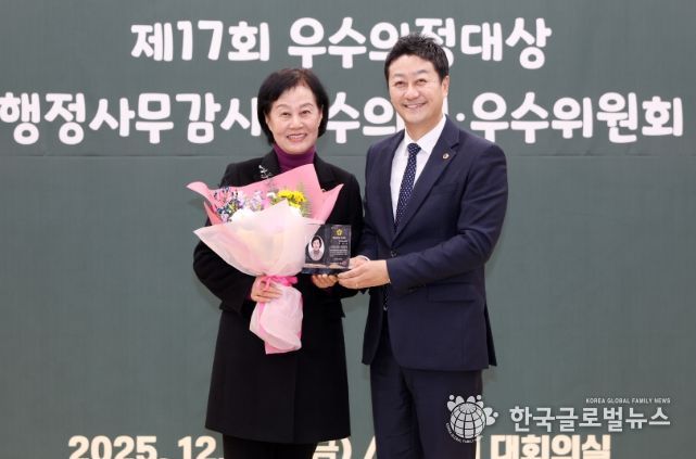 (한국글로벌뉴스 - 박소연 기자) 경기도의회 박명숙 의원(국민의힘, 양평1)은 26일 경기도의회 대회의실에서 열린 의원종무식에서 2025년대 행정사무감사 우수의원상을 수상했다.