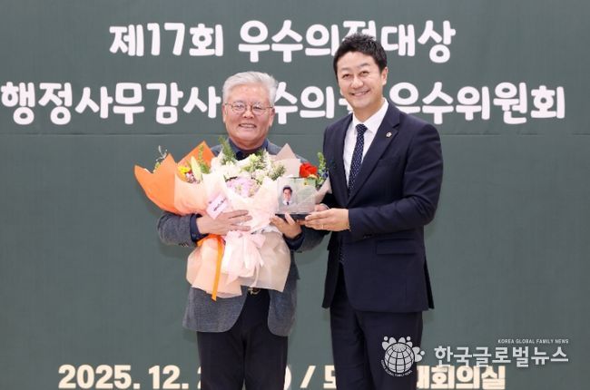 (한국글로벌뉴스 - 박소연 기자) 경기도의회 문화체육관광위원회 홍원길 의원(국민의힘, 김포1)이 26일 2025년 경기도의회 제17회 우수의정대상 행정사무감사 우수의원상을 수상했다.