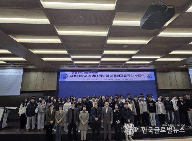 (한국글로벌뉴스 - 박소연 기자) 시흥시는 지난 12월 27일 서울대학교 시흥캠퍼스에서 ‘서울대학교 사범대학 부설 스누융합과학배움터(이하, 스누융합과학배움터)’ 사사과정 수료식을 열었다.