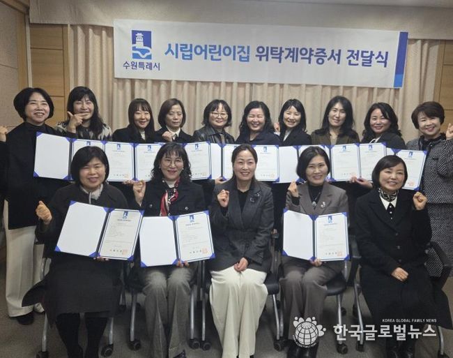 (한국글로벌뉴스 - 박소연 기자) 수원특례시가 29일 시청 소회의실에서 ‘시립어린이집 위탁운영 계약증서 전달식’을 열었다.