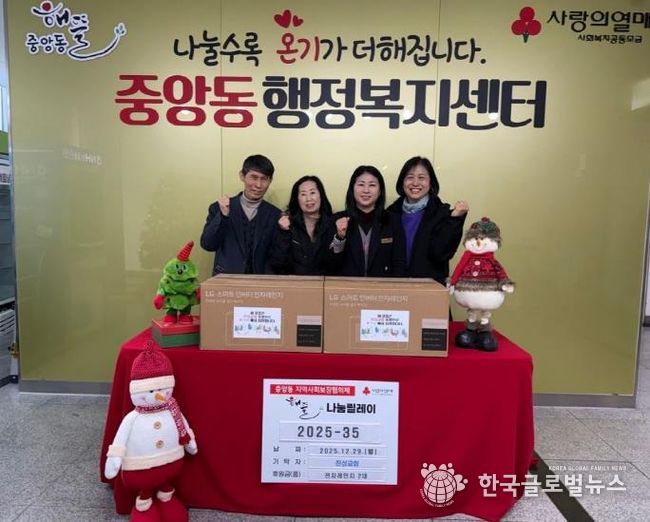 백경희 중앙동장은 “어르신들의 생활을 세심하게 살펴주신 진성교회의 따뜻한 나눔에 깊이 감사드린다”며 “이번 기탁은 새로운 공간에서 시작하는 경로당 어르신들께 큰 힘과 응원이 될 것”이라고 말했다.