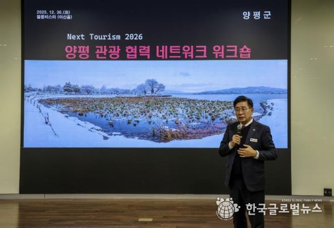 (한국글로벌뉴스 - 박소연 기자) 양평군은 지난 30일 블룸비스타에서 ‘2026 양평 관광 협력 네트워크 워크숍’을 개최하고, 지역 관광의 지속가능한 발전을 위한 협력 방안을 논의했다.
