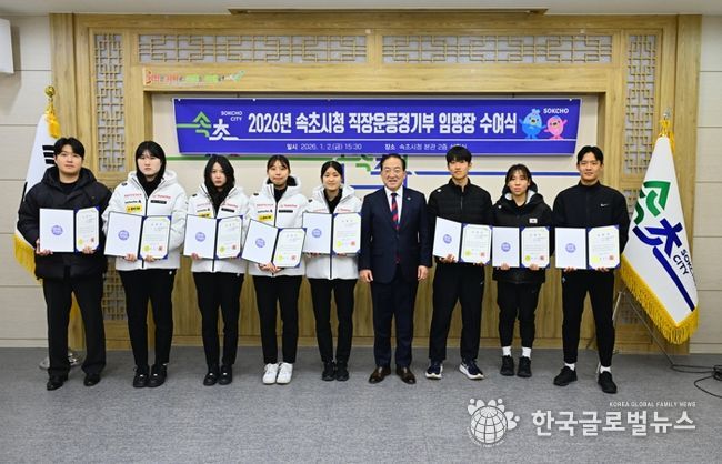 (한국글로벌뉴스 - 박지형 기자) 속초시는 1월 2일, 시청 상황실에서 속초시청 직장운동경기부 신규 입단자 8명에 대한 임명장 수여식을 개최했다.