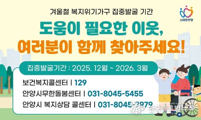 한편, 생계·주거·돌봄 등의 도움이 필요한 가구는 안양시복지콜센터 또는 거주지 관할 행정복지센터에서 상담받을 수 있다.