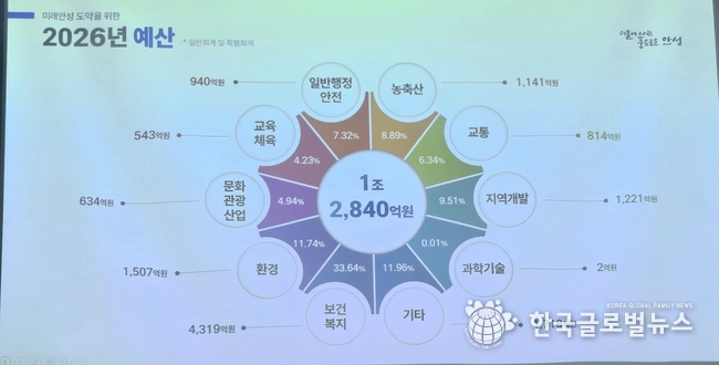 안성시는 2026년 예산 1조 2,840억 원을 기반으로 보건복지, 환경, 지역개발, 농축산, 교통, 문화관광, 교육·체육 등 전 분야에 균형 투자를 이어간다. 이는 김보라 시정이 강조해 온 ‘사람·환경·경제의 조화로운 성장’을 재정으로 뒷받침하는 구조다.