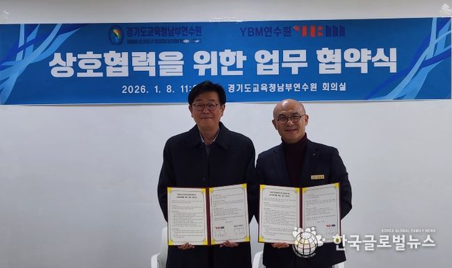 (한국글로벌뉴스 - 박소연 기자) 경기도교육청남부연수원이 8일 YBM연수원과 교원 연수의 질적 수준을 높이고 연수 운영의 전문성과 효율성을 강화하기 위해 업무협약을 체결했다.