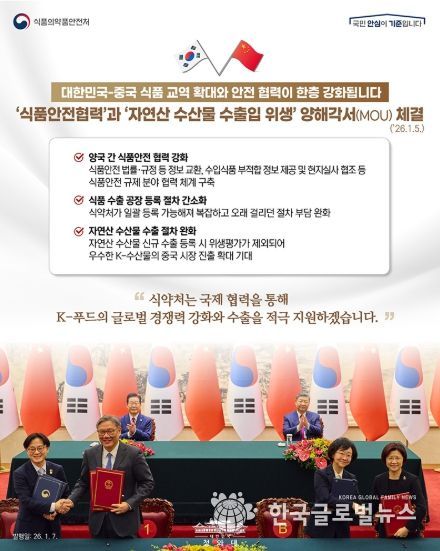 (한국글로벌뉴스 - 박경희 기자) 대한민국-중국 식품 교역 확대와 안전 협력이 한층 강화됩니다.