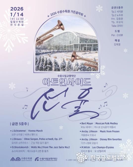 (한국글로벌뉴스 - 박소연 기자) 수원특례시는 1월 14일 일월수목원 전시온실에서 수원시립교향악단 아트인사이드 ‘선율’을 개최한다.