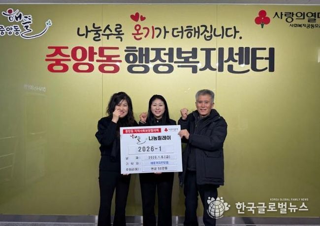 이번 기탁은 중앙동에서 추진 중인 ‘해뜰릴레이’의 첫 번째 나눔으로, ‘해뜰릴레이’는 후원금과 후원품 기부자를 중심으로 릴레이 형식의 나눔을 이어가며 기부 문화 확산과 지속적인 이웃사랑 실천을 도모하는 사업이다. 특히 이번 후원은 2026년 병오년 새해를 여는 첫 해뜰릴레이로, 지역사회에 따뜻한 나눔의 의미를 더했다.