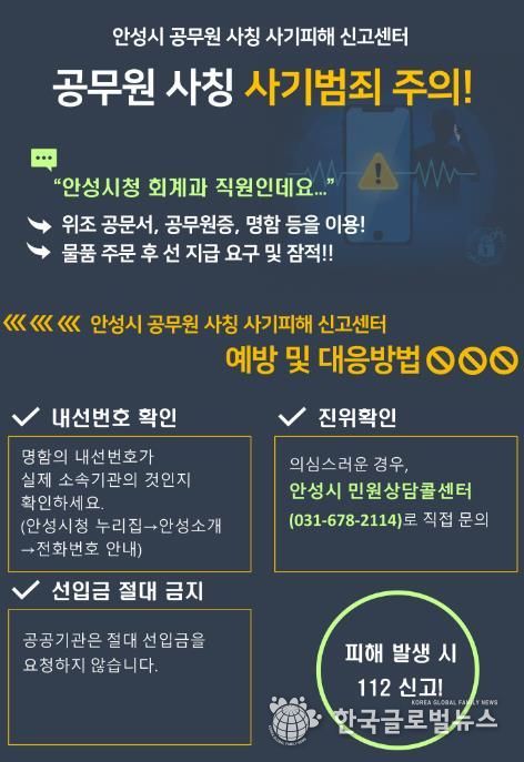 (한국글로벌뉴스 - 박소연 기자) 안성시, ‘공무원 사칭 사기피해 신고센터’ 운영… 소상공인 피해 예방 총력