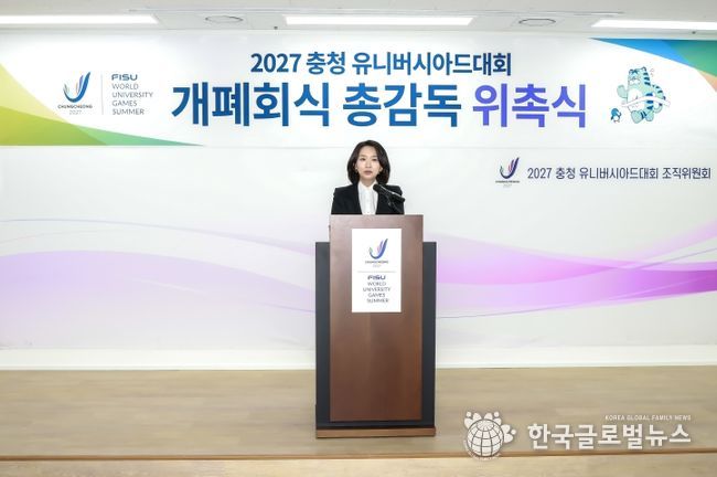 (한국글로벌뉴스 - 박지형 기자) 2027 충청 유니버시아드대회 조직위원회는 19일 조직위 대회의실에서 영화감독 장유정을 개폐회식 총감독으로 위촉했다고 밝혔다.