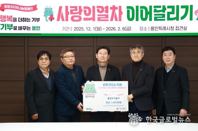 (한국글로벌뉴스 - 박소연 기자) 용인도시공사는 19일 ‘노사합동 사랑의열차 이어달리기’ 성금 1,400만원을 용인특례시에 기탁했다.