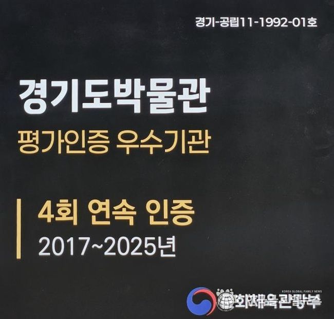 (한국글로벌뉴스 - 박소연 기자) 경기문화재단 경기도박물관은 문화체육관광부가 시행하는 ‘공립박물관 평가인증제’에서 2025년 9월 현장평가를 포함한 평가 결과, 2017년‧2019년‧2022년에 이어 2025년까지 ▲4회 연속 인증을 획득하는 성과를 거두었다.
