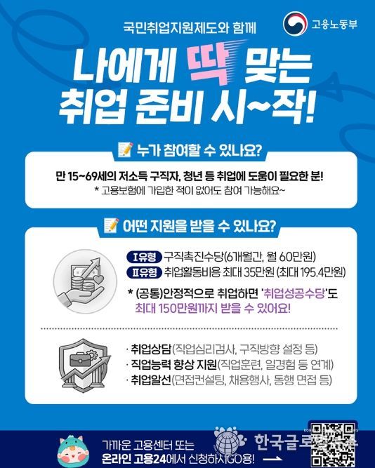 (한국글로벌뉴스 - 박경희 기자) 국민취업지원제도와 함께 나에게 딱 맞는 취업 준비 시~작!