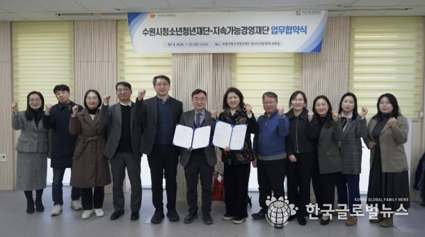 (한국글로벌뉴스 - 박소연 기자) 수원시청소년청년재단과 지속가능경영재단은 1월 22일 고립‧은둔 청소년‧청년 및 사회적 취약 청소년‧청년 지원을 위한 업무협약(MOU)을 체결했다.