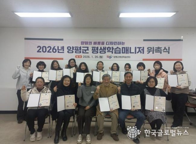 (한국글로벌뉴스 - 박소연 기자) 양평군은 26일 평생학습센터에서 ‘2026년 양평군 평생학습매니저 위촉식’을 성황리에 개최했다.