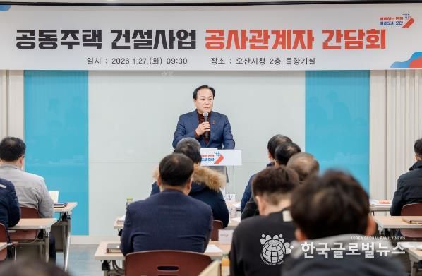 (한국글로벌뉴스 - 박소연 기자) 오산시는 지난 27일 시청 물향기실에서 공동주택 건설사업 공사관계자 40여 명이 참석한 가운데 ‘공동주택 건설사업 공사관계자 간담회’를 개최했다고 밝혔다.