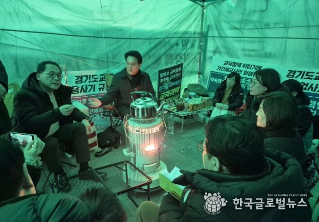 (한국글로벌뉴스 - 박소연 기자) 경기도의회 교육기획위원회 안광률 위원장(더불어민주당, 시흥1)은 27일 오후, 경기도교육청 1층 외부에 설치된 ‘기간제 사서교사 경력 인정 문제 해결 촉구 천막 농성장’을 방문해 교사들의 목소리를 직접 청취하고, 경력 인정 문제에 대한 해법을 논의했다.