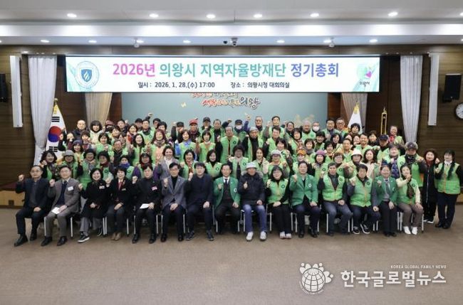 (한국글로벌뉴스 - 박소연 기자) 의왕시 지역자율방재단이 지난 한 해의 활동을 되돌아보고 새해 사업 추진 방향을 공유하기 위해 1월 28일 의왕시청 대회의실에서 자율방재단원 100여 명이 참석한 가운데 '2026년 정기총회'를 성황리에 개최했다.