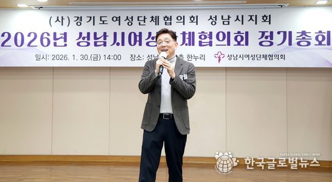 (한국글로벌뉴스 - 박소연 기자) 성남시의회는 30일 성남시청 3층 한누리실에서 열린 ‘2026년 성남시 여성단체협의회 정기총회’에 참석해 한 해 동안 지역사회 발전을 위해 활동해 온 여성단체 회원들을 격려했다.