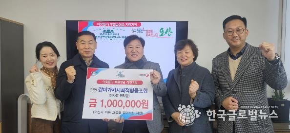 (한국글로벌뉴스 - 박소연 기자) 오산시는 지난 30일, 같이가치사회적협동조합으로부터 관내 아동공동생활가정(그룹홈)인 ‘광야의집’ 입소 아동을 위한 후원성금 100만 원을 기탁받고 기탁식을 가졌다고 밝혔다.