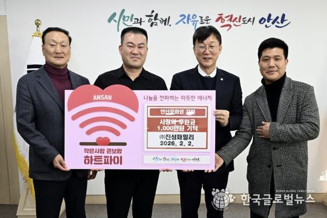 (한국글로벌뉴스 - 박소연 기자) 안산시는 지난 2일 ㈜진성패밀리로부터 후원금 3,000만 원을 기탁받았다고 3일 밝혔다.