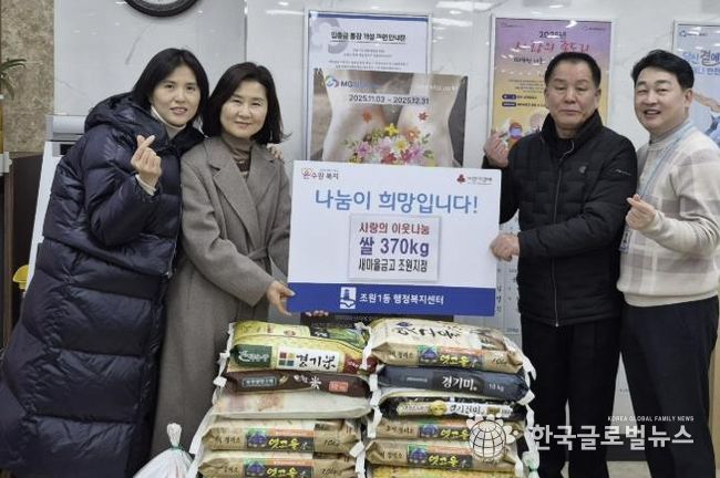 (한국글로벌뉴스 - 박소연 기자) 수원시 장안구 조원1동 행정복지센터는 지난 3일, 수원새마을금고 조원지점이 설 명절을 맞아 어려운 이웃들을 돕기 위해 쌀 370kg을 후원했다고 밝혔다.