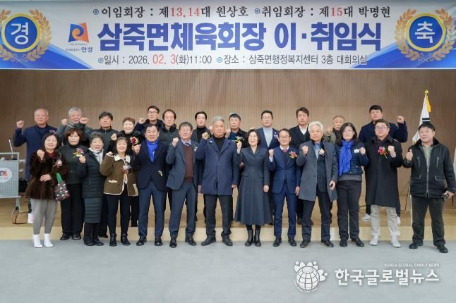 (한국글로벌뉴스 - 박소연 기자) 안성시 삼죽면은 지난 2월 3일, 삼죽행정복지센터 3층 대회의실에서 열린 삼죽면 체육회장 이·취임식을 성황리에 마쳤다고 밝혔다.