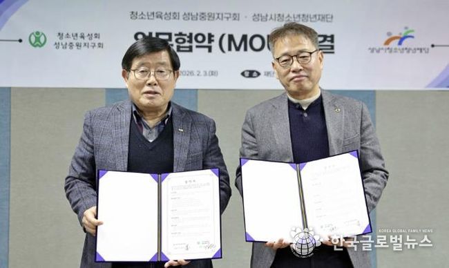 (한국글로벌뉴스 - 박소연 기자) 성남시청소년청년재단은 2월 3일 청소년육성회 성남중원지구회와 지역 청소년의 건강한 성장과 복지 증진을 위한 업무협약을 체결했다.