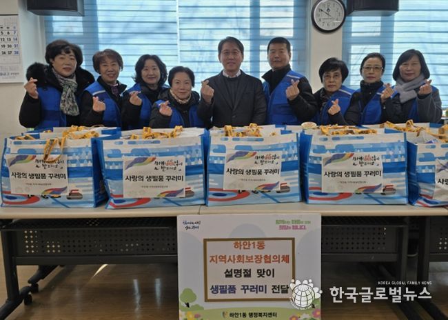 (한국글로벌뉴스 - 박소연 기자) 광명시 하안1동 지역사회보장협의체는 민족 고유의 명절 설을 맞아 지난 3일 관내 저소득 1인 가구를 대상으로 ‘설맞이 생필품 꾸러미’ 전달식을 진행했다.