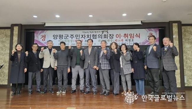 (한국글로벌뉴스 - 박소연 기자) 양평군 주민자치 발전을 이끌어 온 제13대와 새롭게 출범하는 제14대 주민자치협의회장 이·취임식이 지난 4일 양평군 평생학습센터에서 개최됐다.