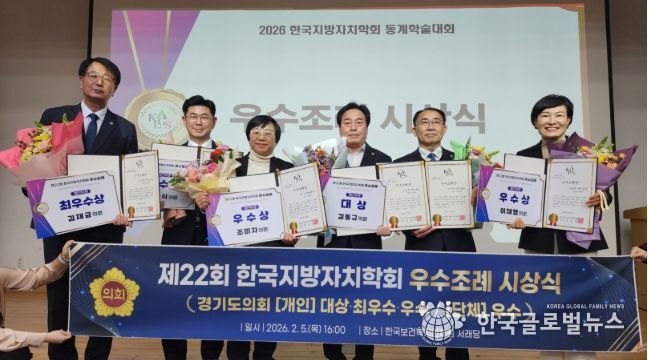 (한국글로벌뉴스 - 박소연 기자) 경기도의회가 5일 ‘제22회 한국지방자치학회 우수조례 시상식’에서 개인부문 대상과 단체부문 우수상 등 총 8건을 수상하며 전국 최고의 입법 역량을 입증했다.