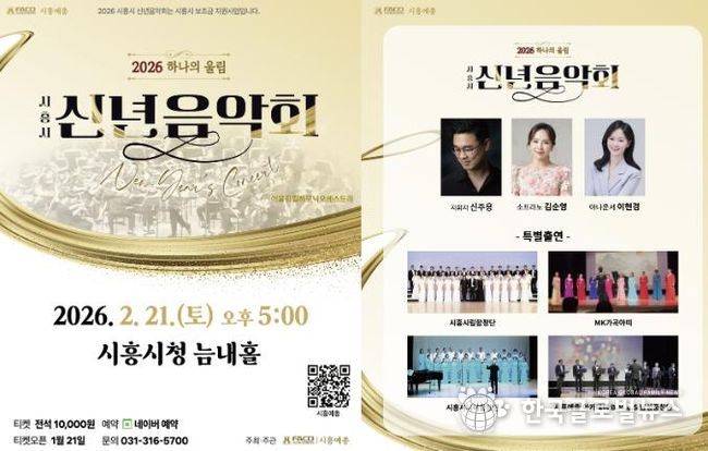 (한국글로벌뉴스 - 박소연 기자) 시흥시가 지원하고 (사)한국예술문화단체총연합회 시흥지회에서 주관하는 ‘2026 시흥시 신년음악회- 하나의 울림’이 오는 2월 21일 오후 5시, 시청 늠내홀에서 개최된다.