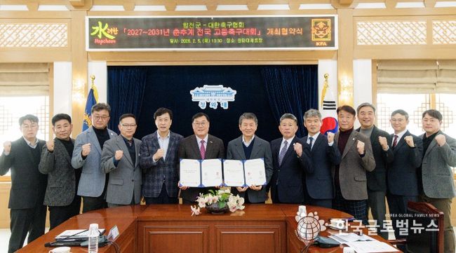 (한국글로벌뉴스 - 박지형 기자) 합천군은 5일 합천영상테마파크 청와대 세트장에서2027~2031년 춘·추계 전국 고등축구대회 개최 협약식을 가졌다고 밝혔다.